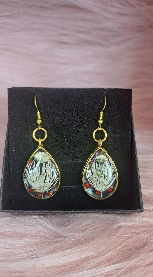This earrings are made from high quality UV resin with dried pressed flowers to finish this beautiful piece off.